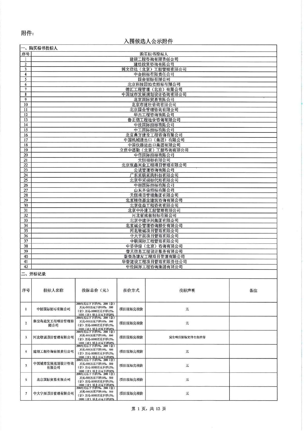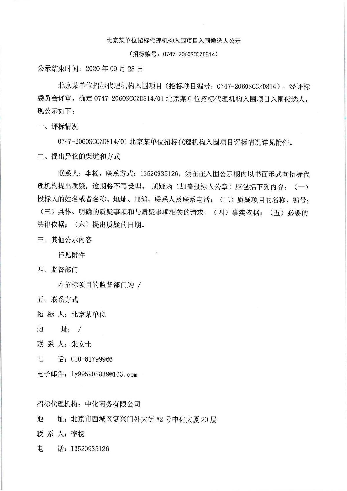 北京華采招標代理有限公司成功入圍北京某單單位候選人